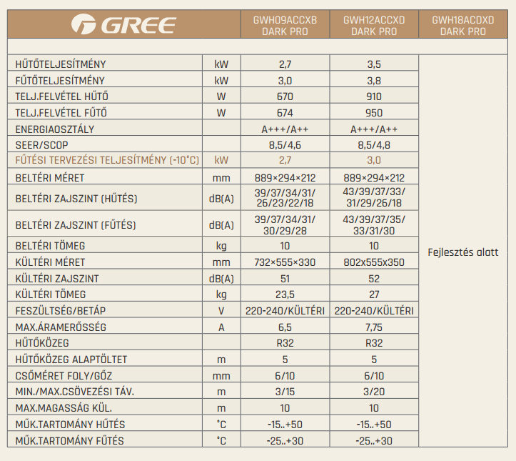 A Gree GWH12ACCXD Dark Pro Inverteres Split klíma fontos tulajdonságai: