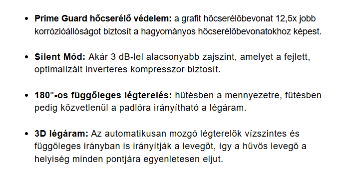 A Midea LUN-12-SP Solunar Inverteres Split klíma fontos tulajdonságai: