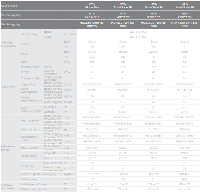 A Midea MTJ-24HWFNX-SP légcsatornázható split (R32, 7,1 kW) fontos tulajdonságai: